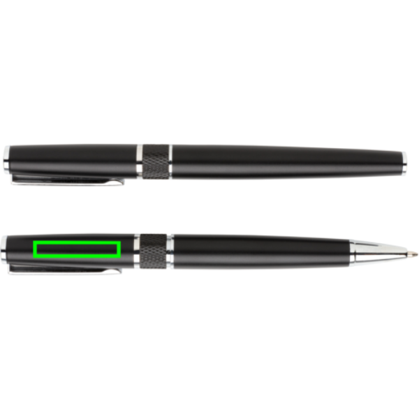 Ein wahrhaft edles Stifteset bestehend aus einem Kugelschreiber und einem Tintenroller in einer wunderschönen Geschenkverpackung mit geprägtem Logo. Beide Stifte haben eine blauschreibende Dokumentalmine für bis zu 1.200m. Der Kugelschreiber einen TC-Ball für besonders sanftes Schreiben.